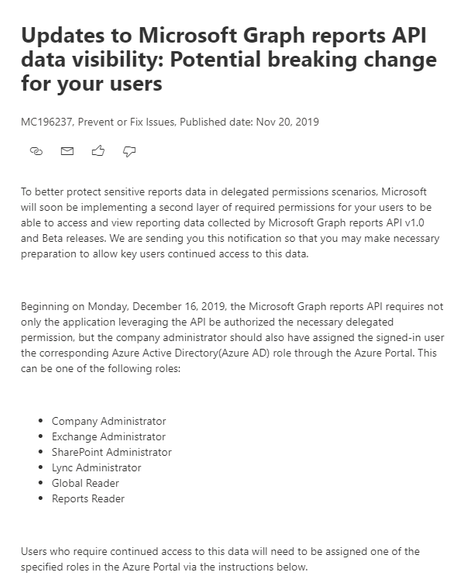 Thehttps://admin.microsoft.com/Adminportal/Home?source=applauncher#/MessageCenter?id=MC196237 is confusing a lot. The specified https://docs.microsoft.com/en-us/graph/api/resources/repo...