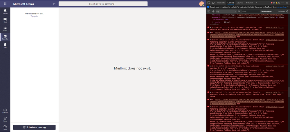 Microsoft Teams Error mailbox does not exist
