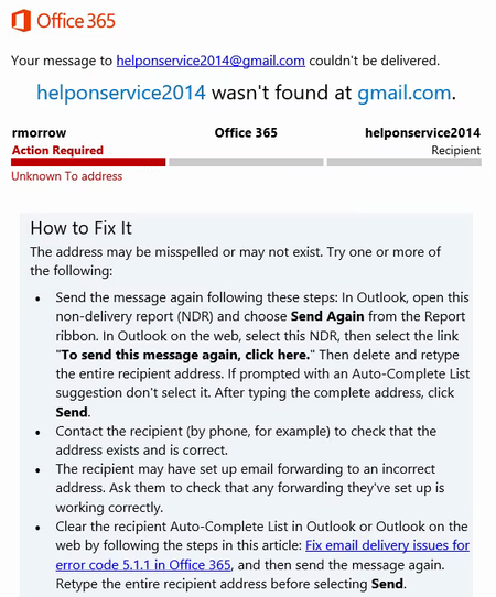 helponservice2014 isn't an account at GMail. Double check the address you are sending to.