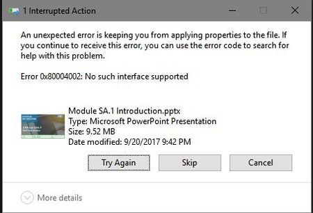 This used to work occassionally but after some specific testing I am now getting an explicit error: Can anyone shed light on why PowerPoint is not supporting the required interface anymore?