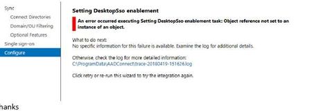 GOt an error in AAD connect after trying to include an OU in selected items to sync in office 365 in the SSO part, the enter credendtials does not accept the Domain Account Error: ...