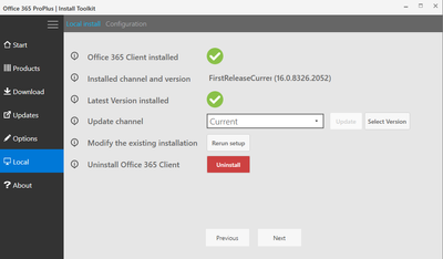<Configuration> <Add OfficeClientEdition="32" Channel="FirstReleaseCurrent"> <Product ID="O365ProPlusRetail"> <Language ID="en-us"/> </Product> </Add> </Configuration>Or Channel="InsiderFast" for Insider Fast builds - https://support.office.com/en-gb/article/How-Office-365-commercial-customers-can-get-early-access-to-new-Office-2016-features-4dd8ba40-73c0-4468-b778-c7b744d03ead.