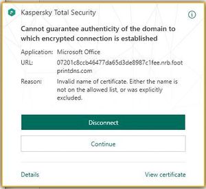 I posted this as a reply in Sharepoint, but this is probably the better place for it.   My Kaspersky Total Security application is identifying an invalid certificate.  The source program is listed ...