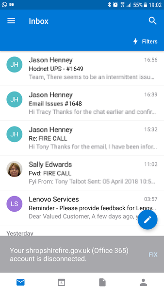 Multiple users on different handsets using Outlook for Android have been getting the above error when opening the app. Click on Fix and this resolves, but this is constantly happening. Have tried th...
