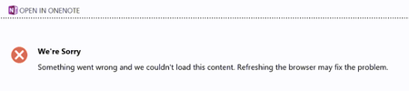 I get the following error while trying to open One note from the teamspace project on Sharepoint. "We are Sorry, something went wrong and we couldn't load the content. Refreshing the browser may ...