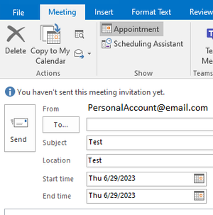 Sorry for the late reply. By default our personal accounts show up, but we would like to send it from the shared account. For example, we have personal emails and then all have added the shared Company Admin email. However, when it comes to doing these appointments, our personal accounts are the default and there is no option to change the From as you would with emails for example.