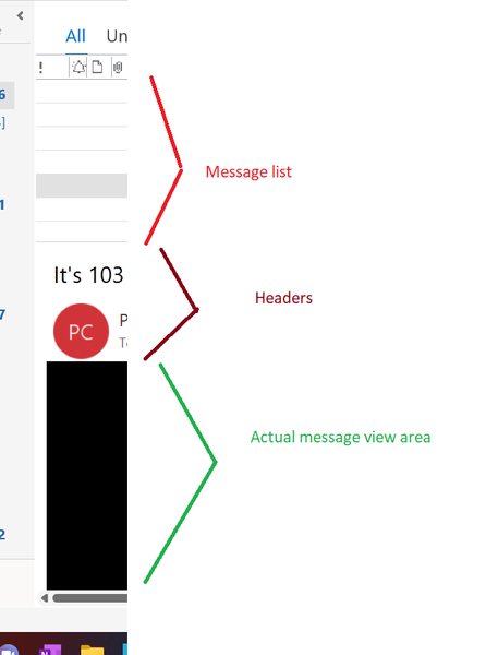 Outlook 365 Header display too large too big too much