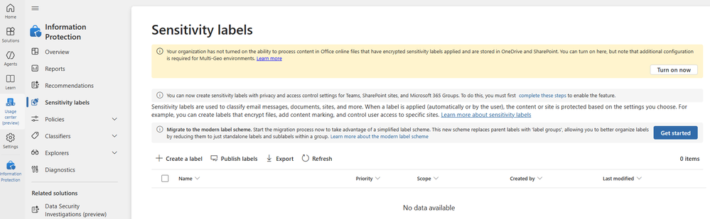 - Go to Microsoft Purview portal > Information Protection > Labels.