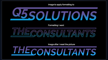 Hello, I formatted a picture and I want to copy the formatting to a similar image but it's not working right. I tried the format painter and tried to copy the format settings but neither work or ...