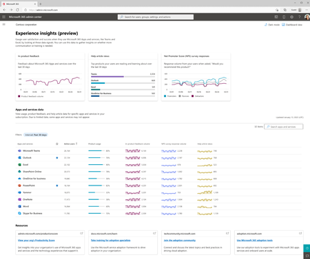Preview of Experience insights for Microsoft 365