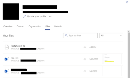 Kidd_IpMy tenant is using a SharePoint site that displays Microsoft's employee profile cards. I'm wondering if there is a way to turn off the "Files" tab from these profile cards so that other people's files can't be viewed from them. I'm aware that the files that show up when viewing another person's profile card are only accessible if the user has had them shared with them, but I'm wondering if there is a way to disable or hide this tab entirely from these profile cards.