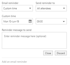 There is a function in O365 Outlook to send Email Reminder to all attendees, in which Microsoft will send an reminder email to all attendees on your behalf: