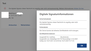 Hallo Zusammen, ich bin Office365 Abonnement und habe mir jetzt ein GlobalSign Stufe 2 Zertifikat ausstellen lassen. Dieses funktioniert auch reibungslos, allerdings bekomme ich ausschließl...