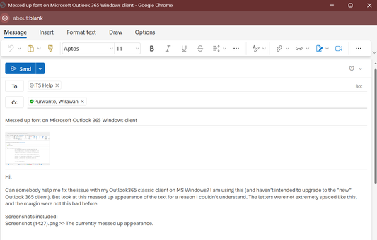 Office365-win-desktop-weird.png: The weird appearance of the email text on Window desktop client