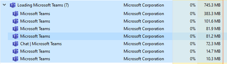 TEAMS DESKTOP APP USES LOTS OF MEMORY AND FREEZES WINDOWS 10