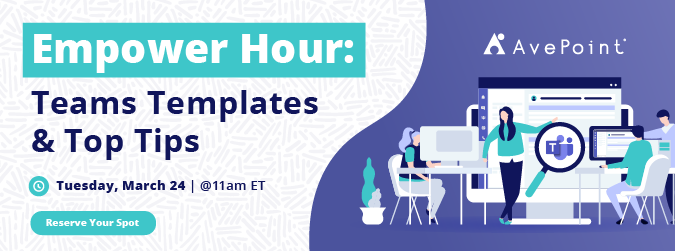 Learn how your org can further leverage the functionality of Microsoft Teams templates to maximize productivity during our Empower Hour featuring Microsoft MVP, Dux Raymond Sy, and Microsoft's Michael Feuda: https://www.avepoint.com/events/webinar/microsoft-teams-templates