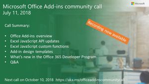 The Office Add-ins community call July recording is now available.