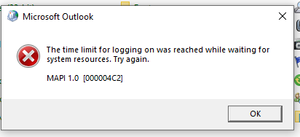 The time limit for logging on was reached while waiting for system resources.MAPI 1.0 [000004C2]