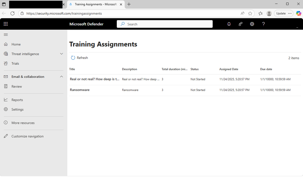 However, when someone gets an invite and they click the link to do the training they are taken to the Defender page. This might be fine for a technical person but its ugly as F for my users. Plus, there is extra rubbish like Threat Intelligence, Trials, Reports, settings etc they can access that I don't want them too.