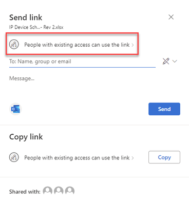 When sharing a File stored in a Team on Teams (stored in a Sharepoint Site, with Restricted Members), the sharing menu defaults to 'People with existing access can use the link' - but the icon associated with that is for the 'Specific People' sharing option. Therefore, when you try to click copy, it prompts you to enter an Email/User
