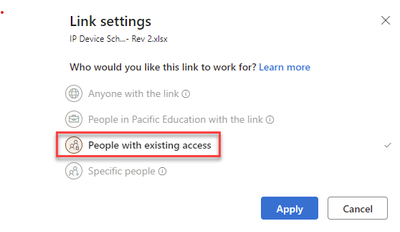 In fact, the 'Specific People' option isn't even valid or selectable - only 'People with existing access' can be selected - so why doesn't it default to this?