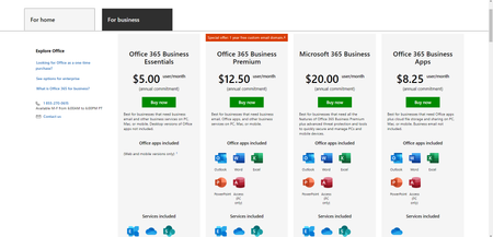 In Office 365 you have many options based on your needs, you have multiple plans to fit the organization size, features and options.