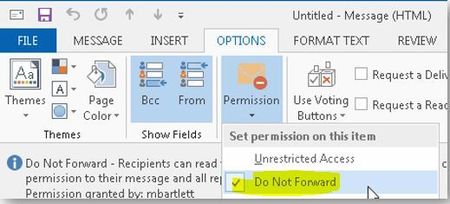 The above is for the "button", if you want to remove all the menu entries as well, use the reg keys detailed in this thread: https://techcommunity.microsoft.com/t5/Azure-Information-Protection/Disable-quot-Do-Not-Forward-quot-RMS-Template-for-Outlook-OWA/td-p/123778