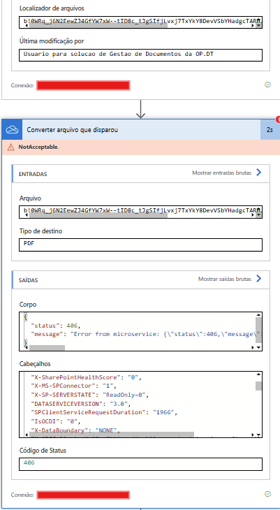 "message": "Error from microservice: {\"status\":406,\"message\":\"Não há suporte para a conversão desse arquivo para PDF. (cannotOpenFile / Error from Office Service. Url=https://wordcs.officeapps.live.com/document/export/pdf HttpCode=BadRequest)\",\"source\":\"api.connectorp.svc.ms\"}\r\nclientRequestId: y-13f3-4e1a-a77a-x\r\nserviceRequestId: y-a09f-b000-f272-x"