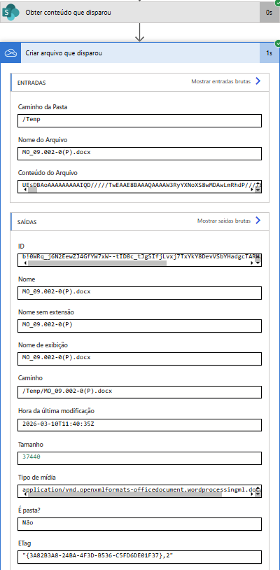 Flow: I get the data from the word that I need > I create the same file on OneDrive > I convert the file to .pdf > then I create the file on Sharepoint.