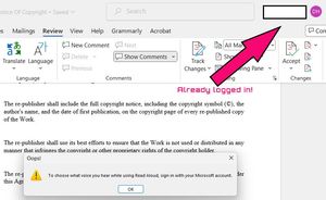 9-22-2023, mid listening to a document I'm writing, it gave me the same need to login message the original thread author posted. I too am already logged in?!