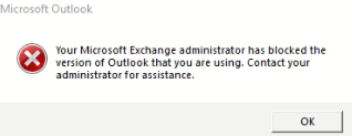 your microsoft exchange administrator has blocked the version of outlook that you are using contact