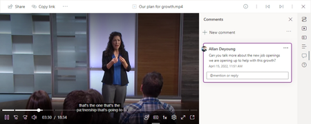We are currently rolling out the ability to have threaded comments on audio and video files in M365 (SharePoint, OneDrive, Teams, and Yammer). This allows you to have conversations and collaboration...