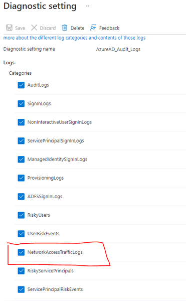 AAD diagnostic settings NetworkAccessTrafficLogs