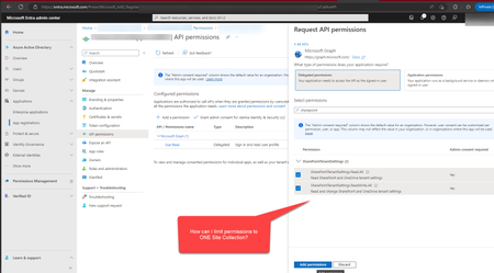 App Registration API Permissions how to limit to ONE Site Collection