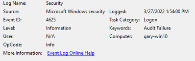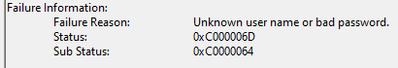 When I look at the security logs on the VM, all I see is a Windows 4625 error which does not give me much of a clue as to why it did not allow the login:
