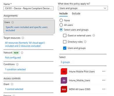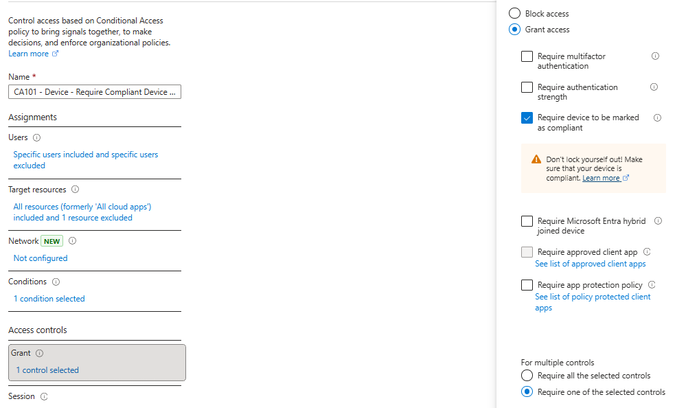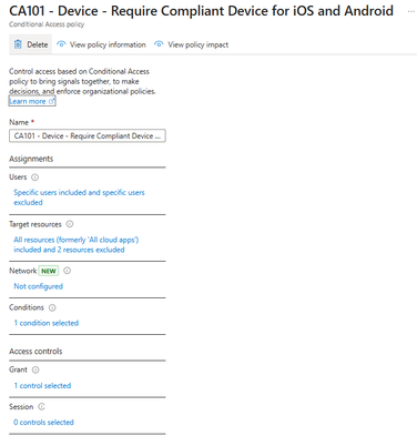 We’re currently experiencing an issue where corporate email remains accessible in the Outlook mobile app on personally owned iOS devices, even after the device either falls out of compliance or undergoes an enterprise wipe. These devices are managed through Intune. Additionally, some users may have personal email accounts configured within the Outlook mobile app already. Below is the conditional access policy currently applied to mobile devices. Any assistance would be appreciated.