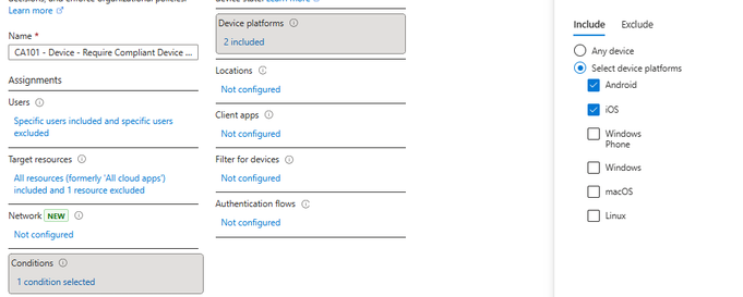 try the WhatIf menu option in conditional access to see what happens on those devices, and create some "WhatIf scenarios" to see results and validate them