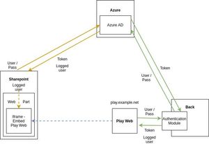 I have a website "Play web". When I want to access into this site I have to login previously with user/pass. An authtentication module, handle this info and starts a communication with an Az...