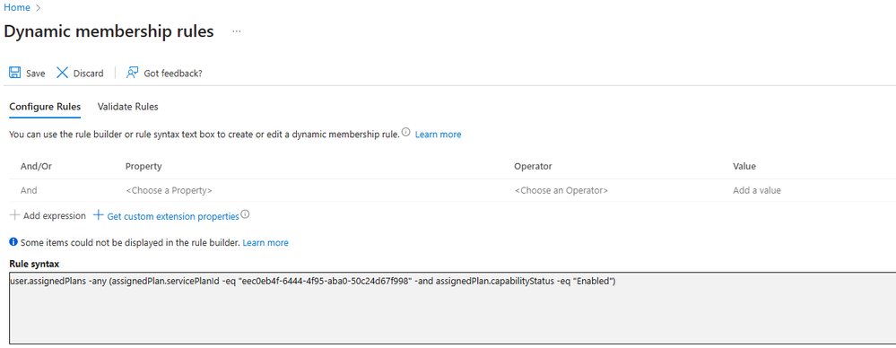 Thus, the dynamic membership rule should query for something unique to the Microsoft 365 Business Premium license plan. If your tenant only includes business licenses, it will be straightforward to select Microsoft Business Premium. For instance, Business Premium includes service plans such as Entra ID Premium or Intune, which Business Basic and Standard do not include.