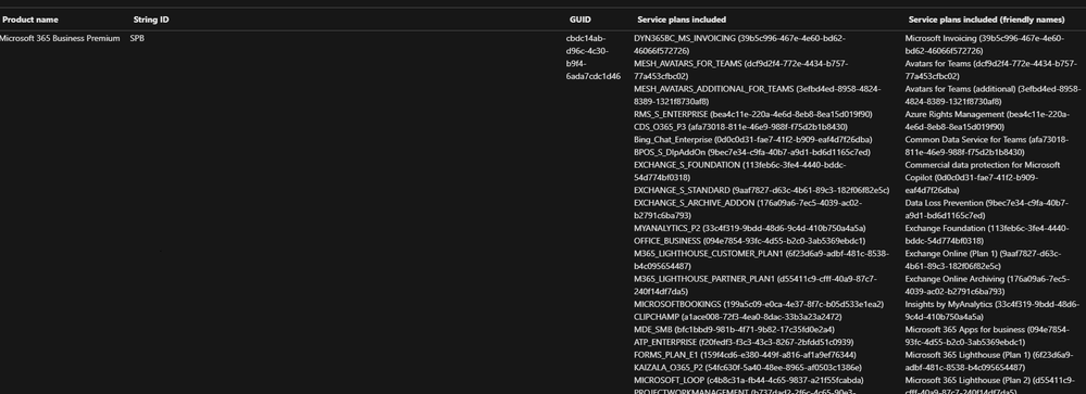 It's crucial to specify the correct service plan ID. To find the correct service plan ID, please refer to the documentation https://learn.microsoft.com/en-us/entra/identity/users/licensing-service-plan-reference. The documentation indicates that Microsoft 365 Business Premium is a product name with its unique GUID. Microsoft 365 Business Premium includes several service plans; therefore, Microsoft 365 Business Premium itself is not a service plan but a product that includes service plans.