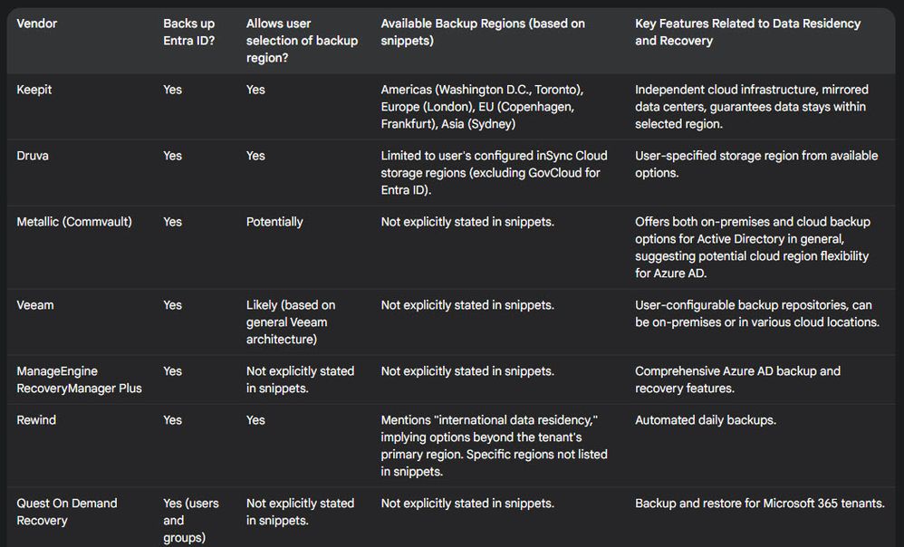 I am looking into Entra ID business continuity and found this https://azure.microsoft.com/en-us/blog/advancing-service-resilience-in-azure-active-directory-with-its-backup-authentication-service/ regarding the backups that occur for Entra. Are the back ups stored in the same region as the Entra tenant or in a different region?