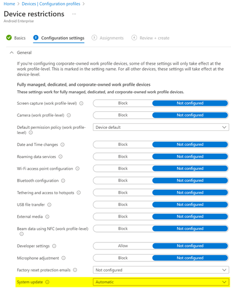 What would be the expected behaviour when we set the System update to Automatic in the Android Enterprise Device restriction profile? We have several devices rebooting "randomly" and without ...