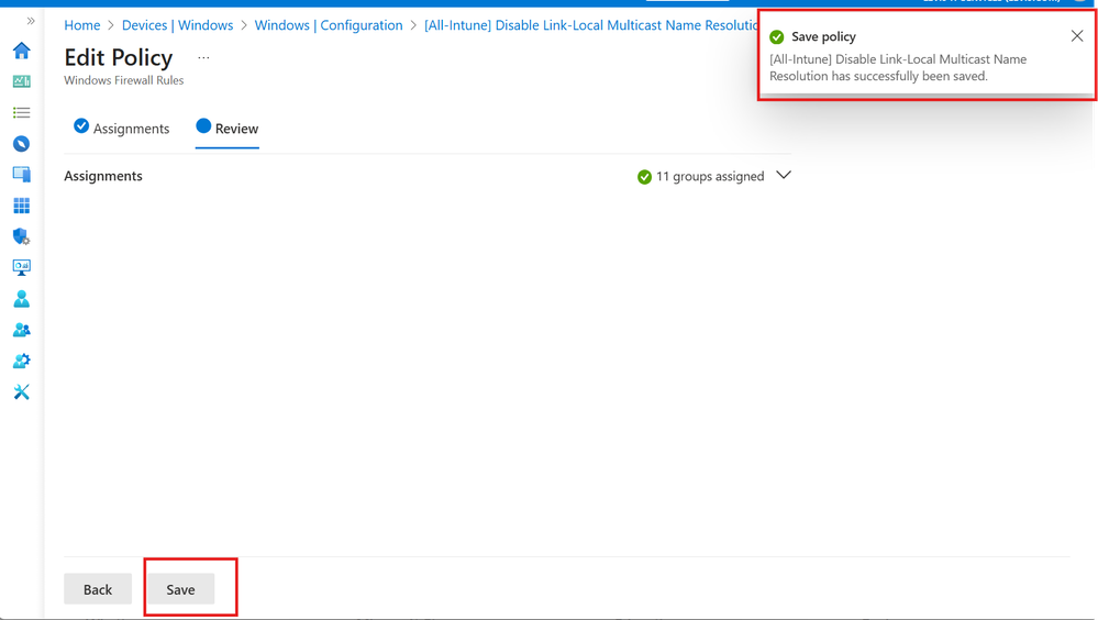 I tried to update group assignments of existing policy(policy type is Windows Firewall Rules) in Intune with Global administrator role.