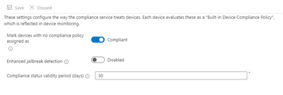 - Move the top slider so that devices without a compliance policy assigned are marked as not compliant for security reasons (If all of your devices are enrolled with Intune). By doing so, you can use Conditional Access rules with the setting that devices should be compliant to use services.