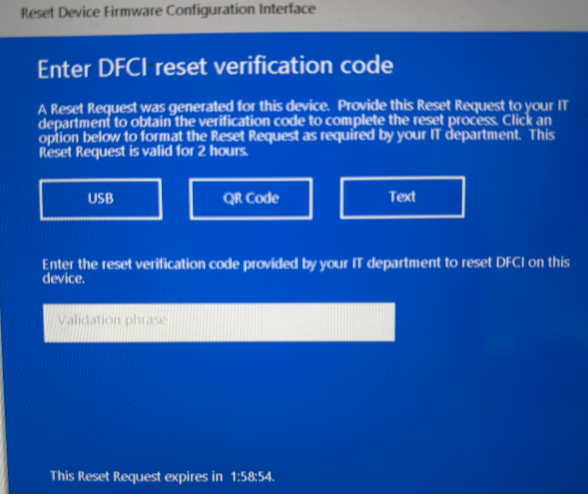 I have a Surface Pro device where I need to re-enable 'boot from USB devices', but I need to follow the 'Enter DFCI reset verification code' process since 'boot from USB devices' is greyed out due to Company policy. None of the admins in my company have ever done this process before.