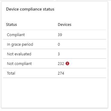 Never see this before, first i would see what are not compliant, you should be able to see it and click on device who is not compliant or in grace period on each device you should see like this