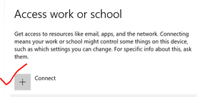 How to remove/disable "Connect" button from Access work or school account settings on Windows device