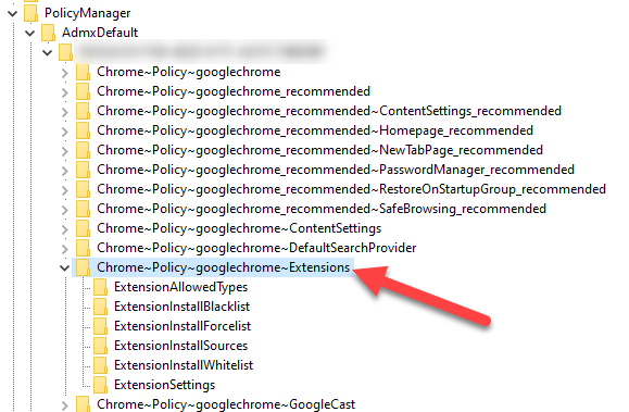 => simply look at the ingested ADMX file and you will see the complete structure and here we have the Chrome~