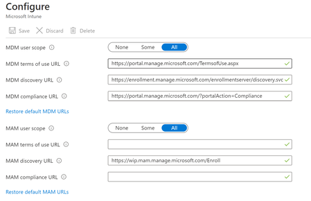 Intune Automatic Enrollment settings