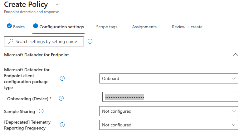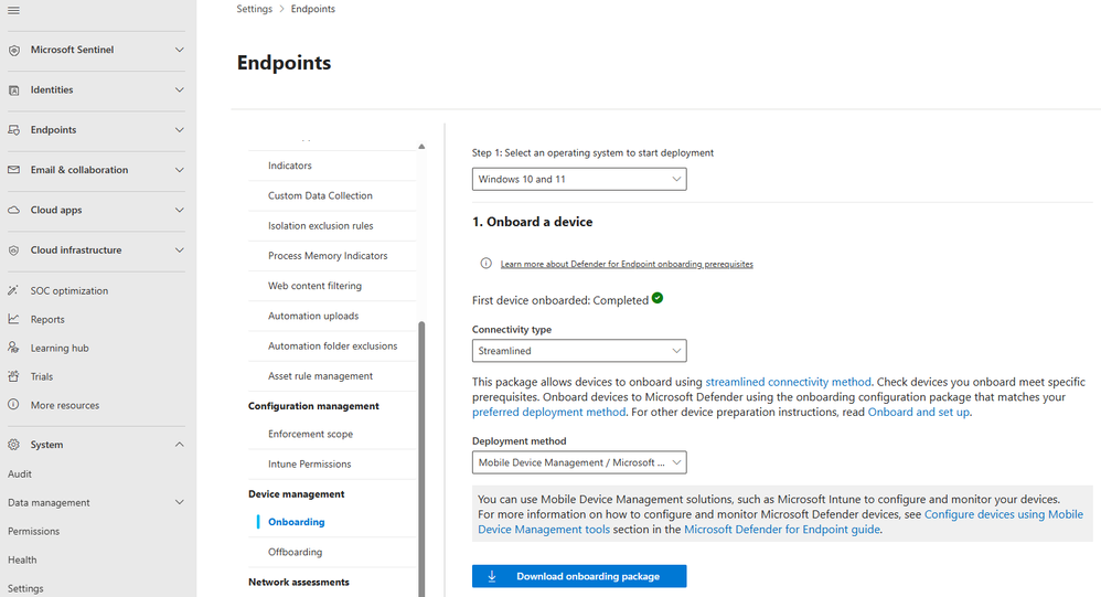 2. For the device key, navigate to Defender portal --> Settings --> Endpoint --> Select following and download the package.3. Open the zip file and copy the code this is a lengthy text which you have to copy.